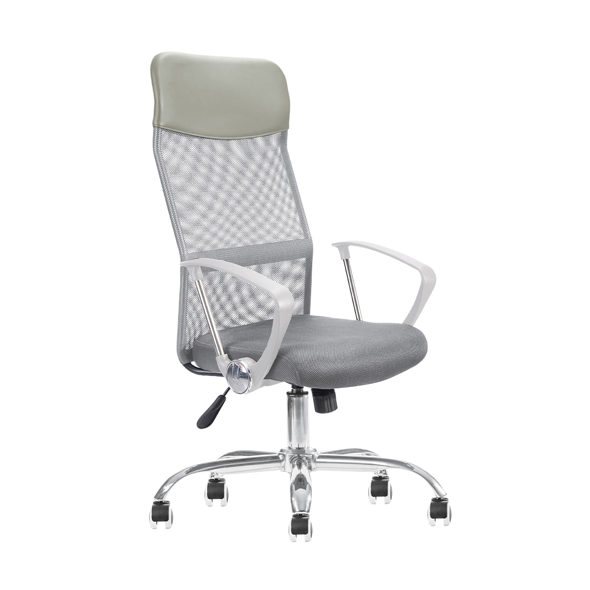 • Base estrella pentagonal de acero, diámetro de 660 mm, terminada en cromo con cubierta protectora en polipropileno cromado.